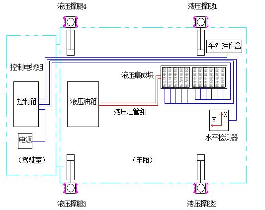 图11 四腿电液式车载自动调平系统布局图