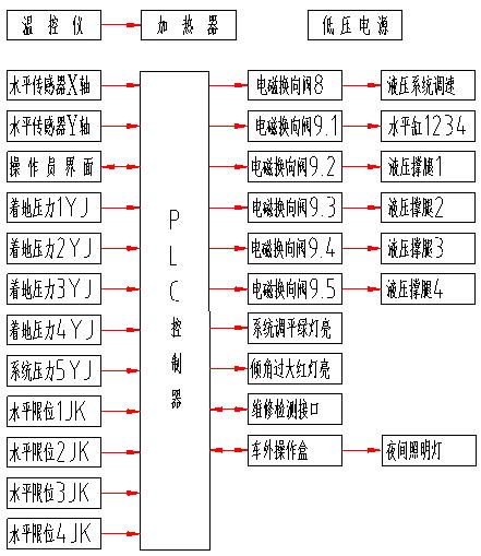 2)PLC控制器:调平系统的控制核心。控制命令通过控制器发出,同时采集反馈信号,使各个物理量构成一个个相对独立的闭环控制系统。